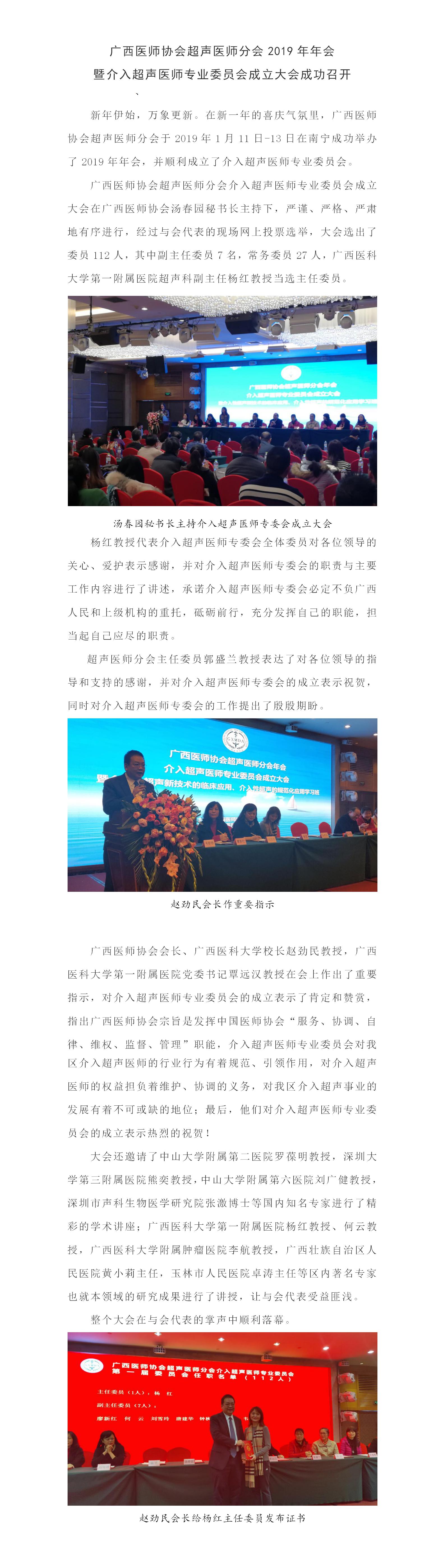 >> 广西医师协会介入超声医师专业委员会成立大会