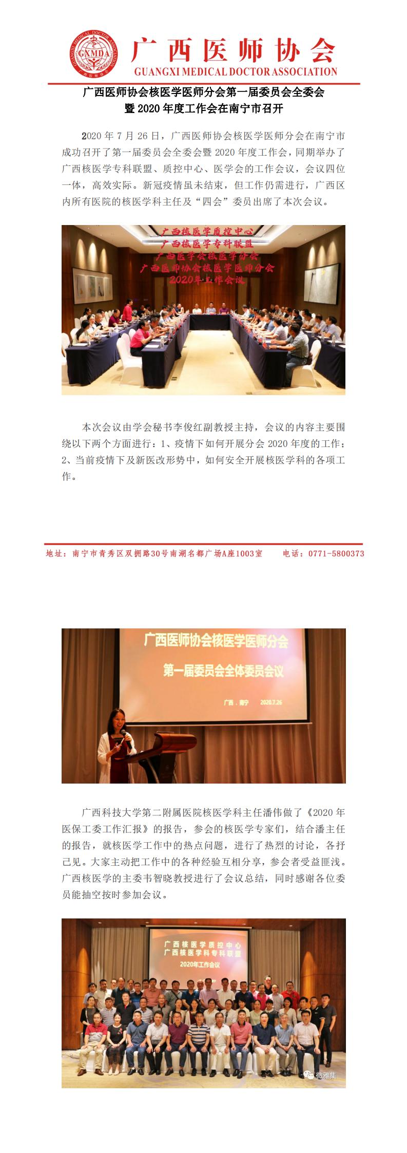 广西医师协会核医学医师分会第一届委员会全委会暨2020年度工作会在南宁市召开