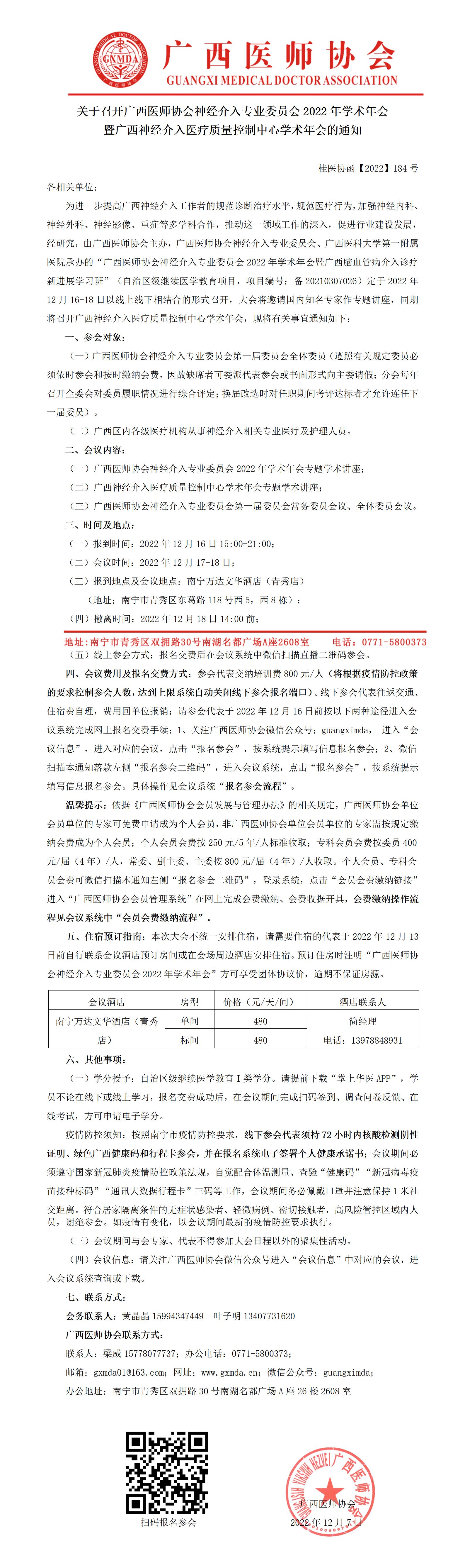 【2022】184号 关于召开广西医师协会神经介入专业委员会2022年学术年会暨广西神经介入医疗质量控制中心学术年会的通知.pdf