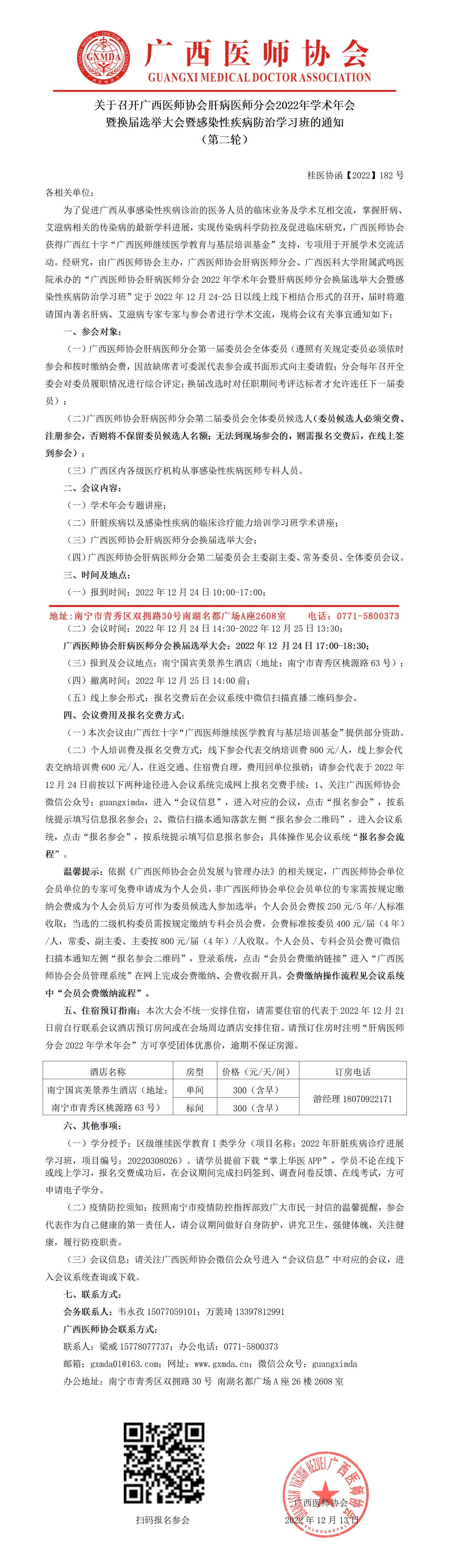 【2022】182号 关于召开广西医师协会肝病医师分会2022年学术年会暨换届选举大会暨感染性疾病防治学习班的通知(第二轮).pdf