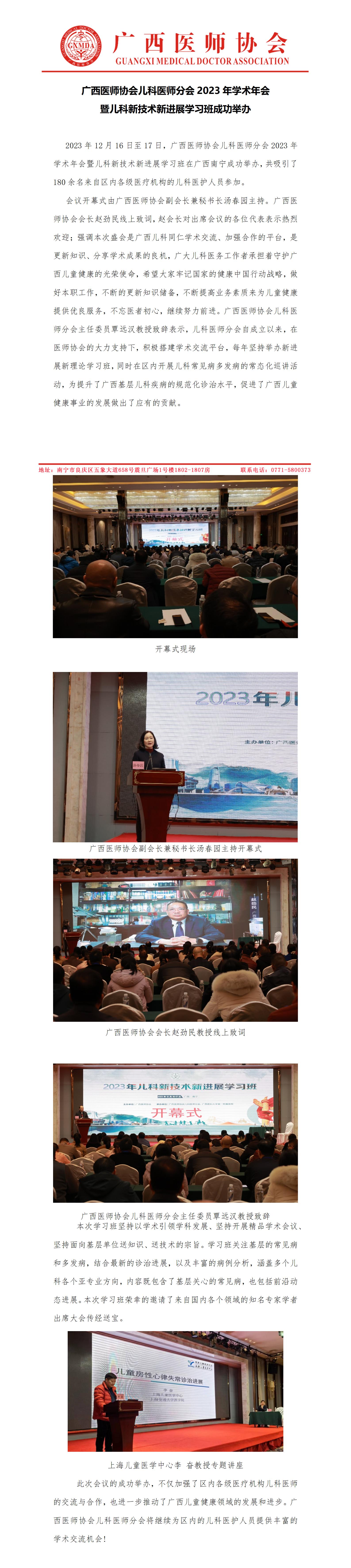 >> 儿科医师分会2023年学术年会暨儿科新技术新进展学习班成功举办