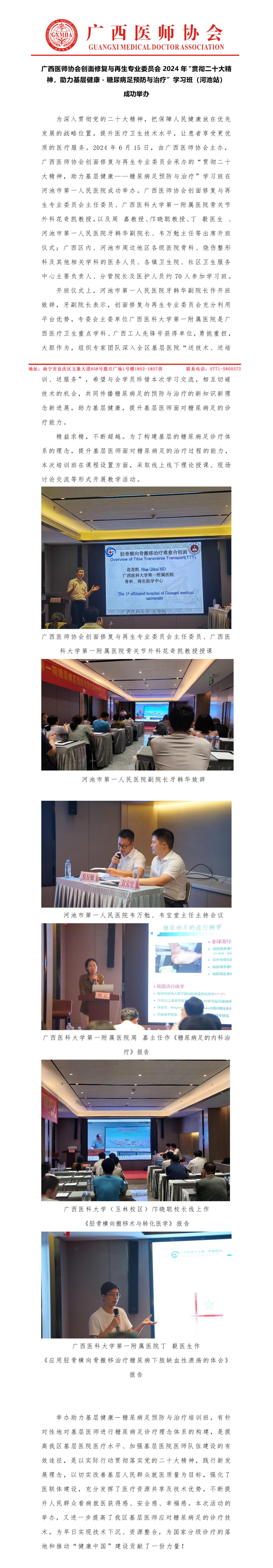 创面修复与再生专业委员会2024年“贯彻二十大精神,助力基层健康-糖尿病足预防与治疗”学习班(河池站) 成功举办