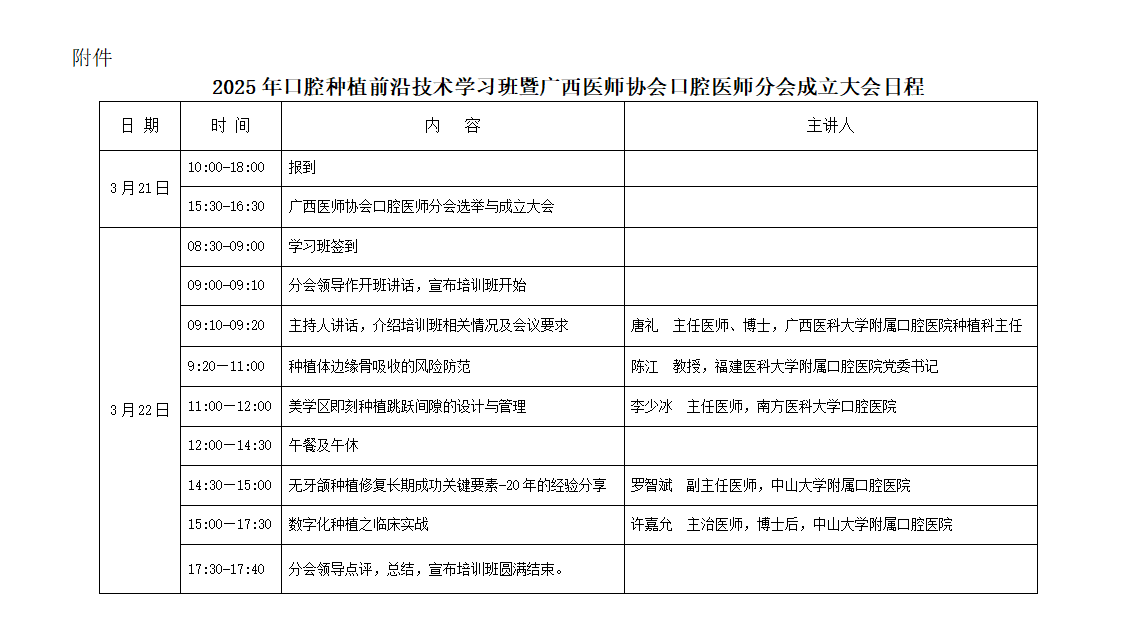 〔2025〕29号 关于举办2025年口腔种植前沿技术学习班暨广西医师协会口腔医师分会成立大会通知