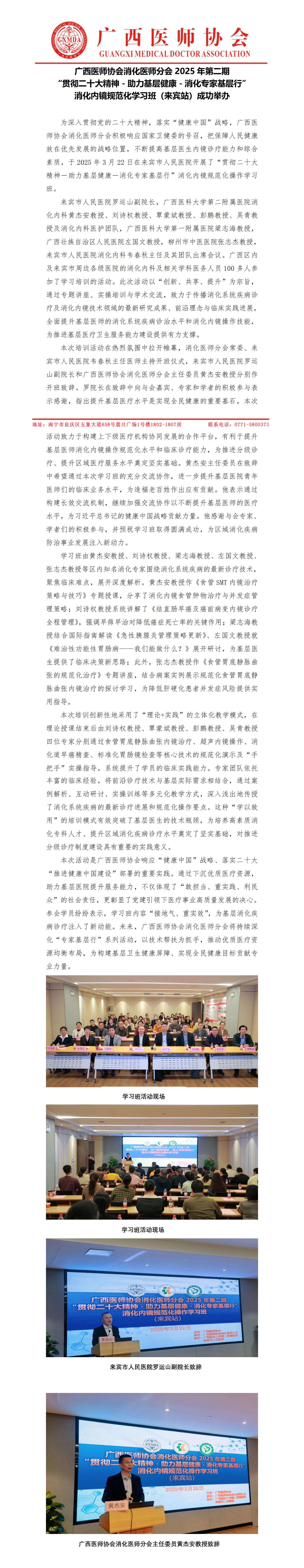 >> 消化医师分会2025年第二期“贯彻二十大精神-助力基层健康-消化专家基层行”消化内镜规范化学习班(来宾站)成功举办