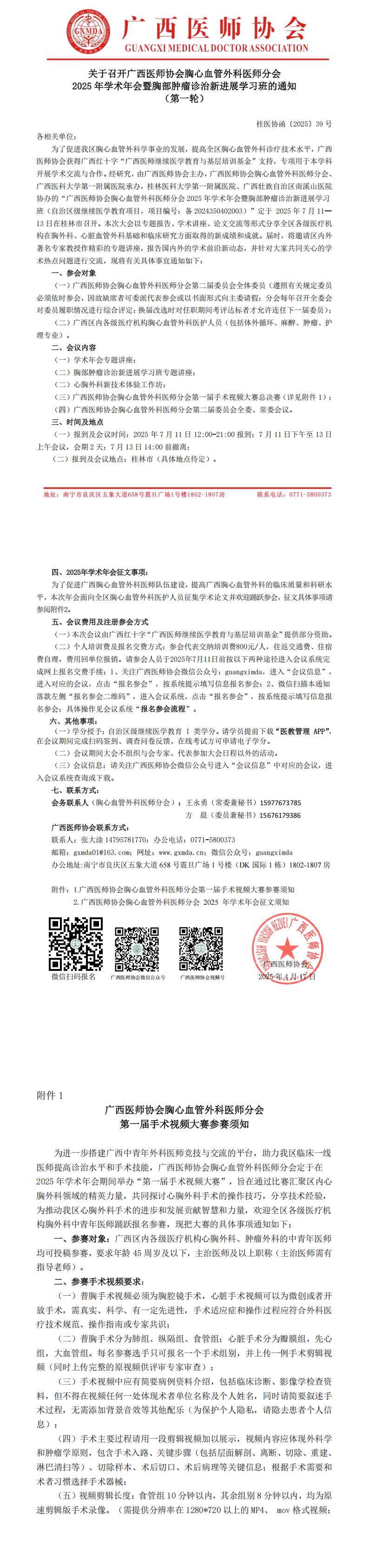 〔2025〕39号 胸心血管外科医师分会2025年学术年会通知 (第一轮)